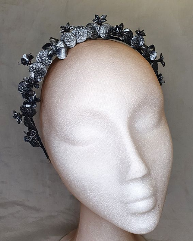 Aurora — Diadema floral en porcelana fría plateada