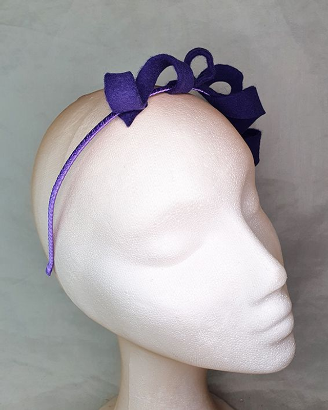 Ino tocado fascinator fieltro de lana violeta