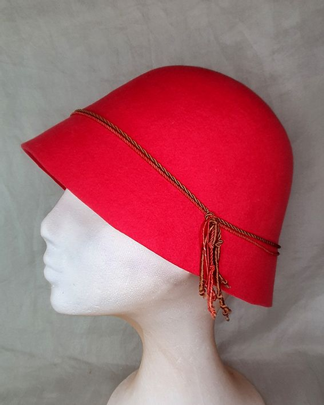 Lucy cloché sombrero fieltro rojo coral estilo años 20