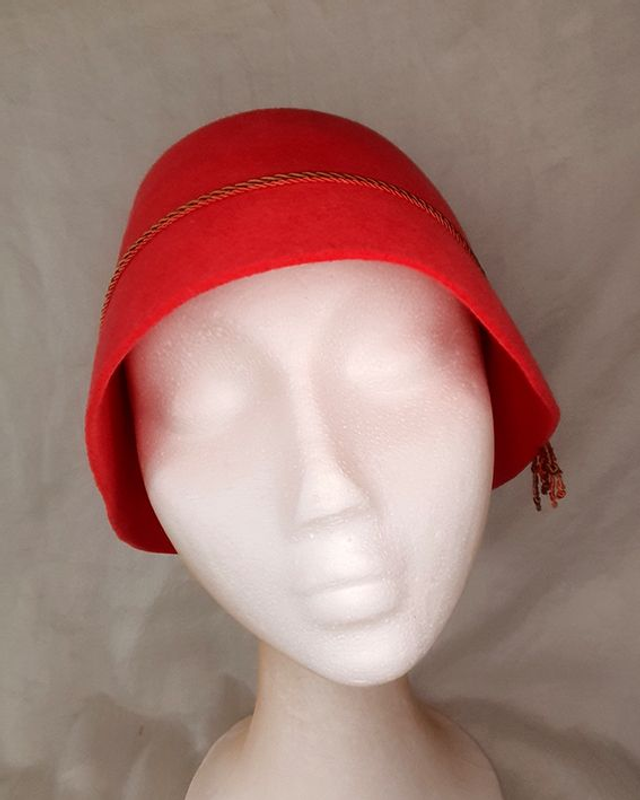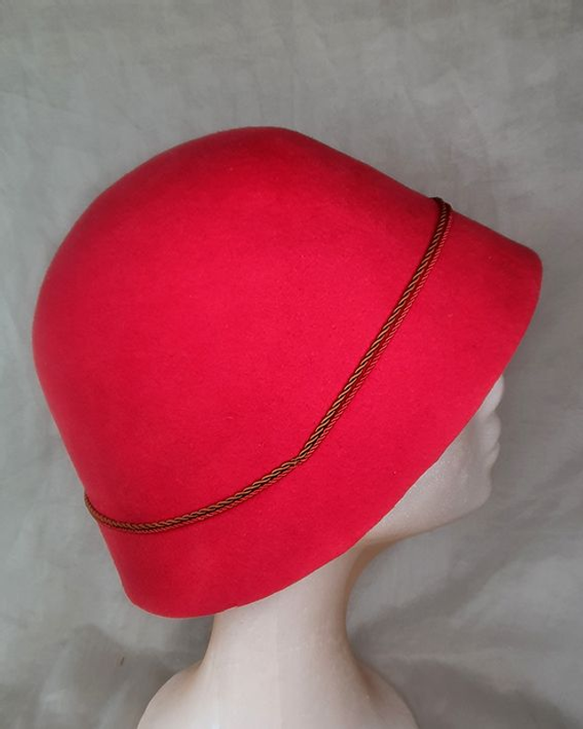 Lucy — cloche de fieltro de lana rojo coral estilo años 20
