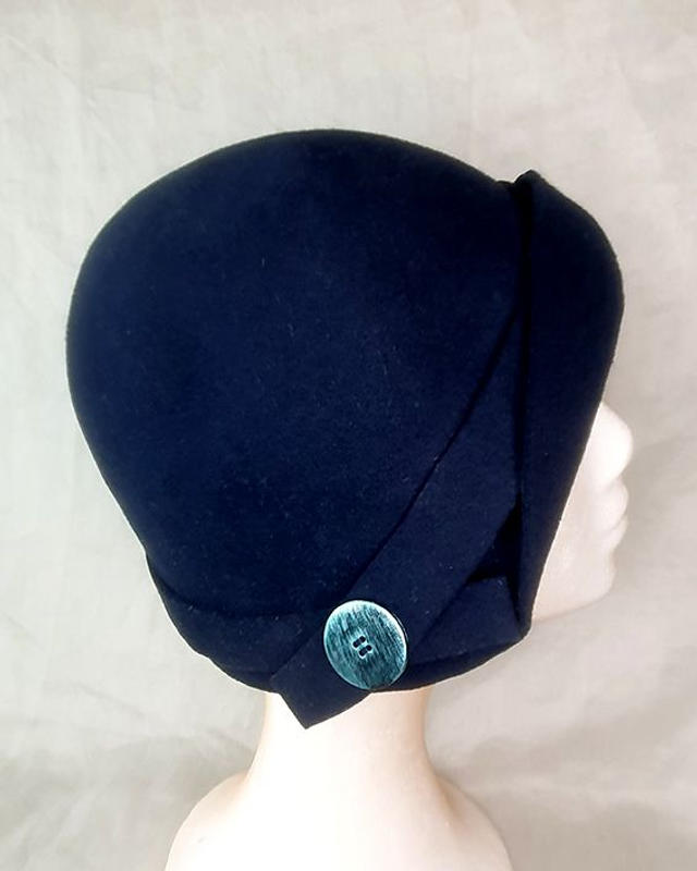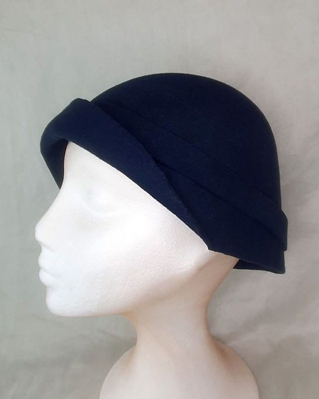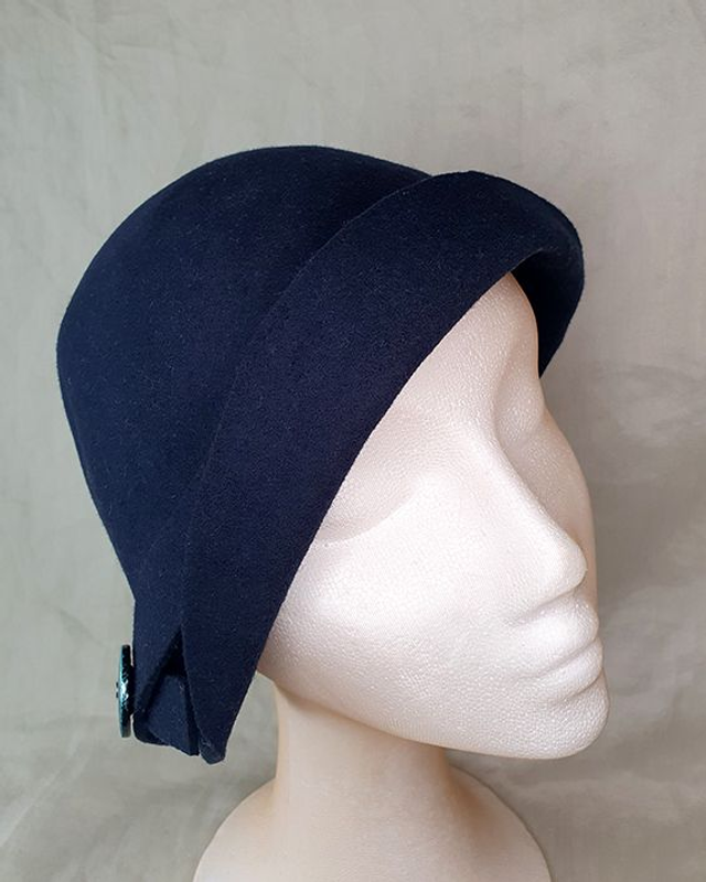 Nelly — cloche de fieltro de lana azul marino estilo años 20